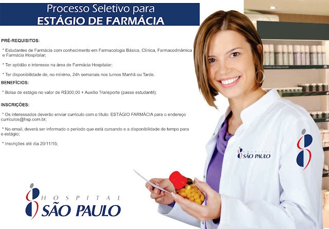 Bolsa R$ 520,00+ VT R$ 6,00 /30 hs semanais/ Informar horário das aulas / Enviar currículos para: rhestagio@institutopascal.org.br